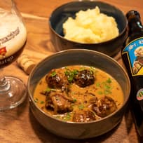 Seit ich das St. Bernardus Buch gelesen habe juckte es mich in den Fingern eins der Rezepte nachzukochen. Jetzt habe ich es endlich geschafft. Die Wahl fiel auf Fleischbällchen in Rahmsauce mit dem Abt 12 Quadrupel.
